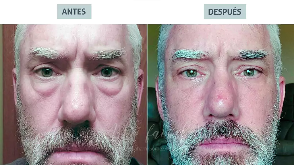 La edad y la genética no hacen distinción entre géneros en cuanto a la presencia de bolsas en los ojos. En los hombres, las bolsas pueden aparecer ya en la tercera década de la vida, transmitiendo una apariencia cansada, de falta de sueño y envejecida. En los hombres más jóvenes, esto suele ser una condición genética o, más precisamente, anatómica. A partir de los 40 años los hombres comienzan a notar los signos reveladores del envejecimiento en la región de los ojos, especialmente cuando comienzan a aparecer las bolsas y las arrugas en los párpados.