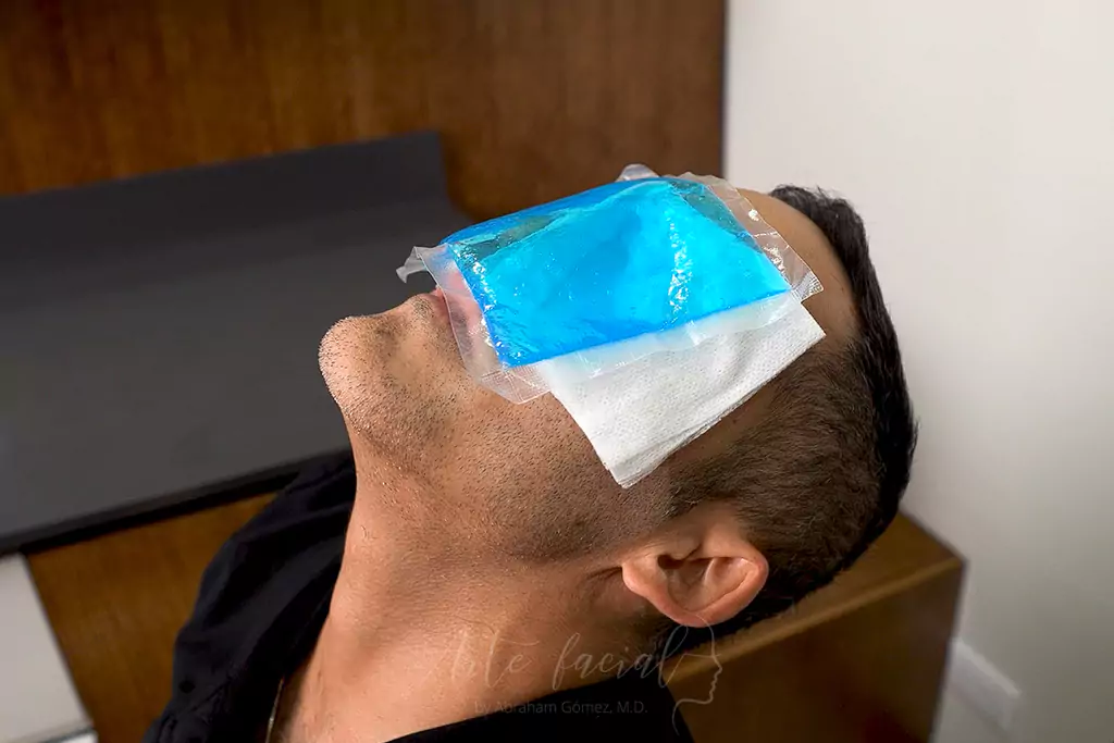 Las compresas frías son una forma fácil y práctica de brindar alivio después de la cirugía. Puede utilizar un antifaz de gel frío o una bolsa de guisantes congelados – que se adaptan a la curvatura del rostro – para aplicar la compresa sobre los párpados. Coloque una gasa limpia sobre los párpados y luego coloque la compresa sobre ella. Recomiendo aplicar compresas durante 5 minutos cada hora mientras estás despierto. Puede utilizar las compresas frías durante 12 a 24 horas después de la cirugía.