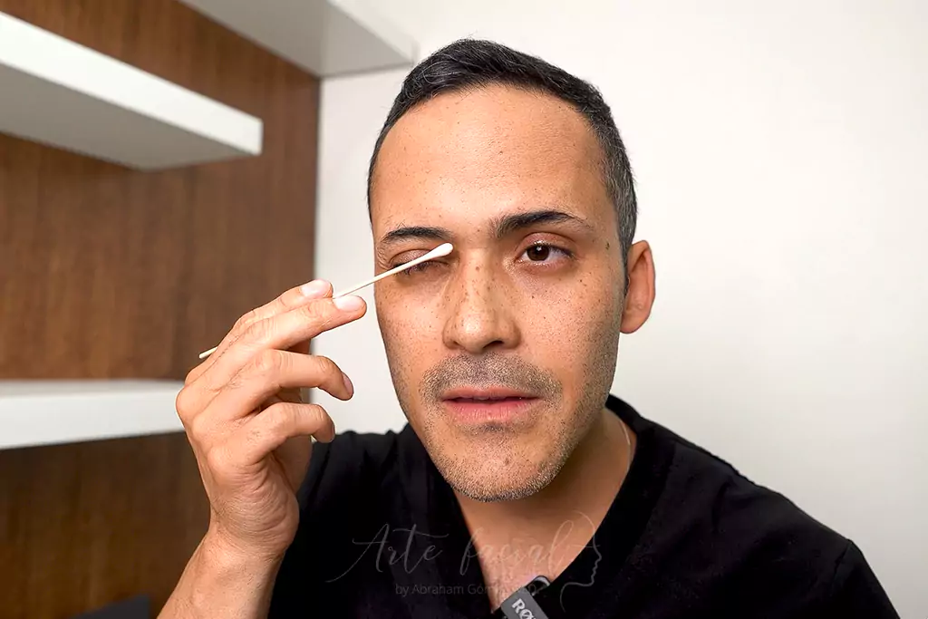 Una cantidad de ungüento del tamaño de un grano de arroz es suficiente tanto para el párpado superior como para el inferior. No recomiendo cubrir la herida con una capa gruesa de pomada. Utilice un aplicador de algodón para esparcir suavemente el ungüento en las heridas, haciéndolo usted mismo guiado por un espejo o, si es posible, puede pedirle a su cuidador que le ayude con este paso.