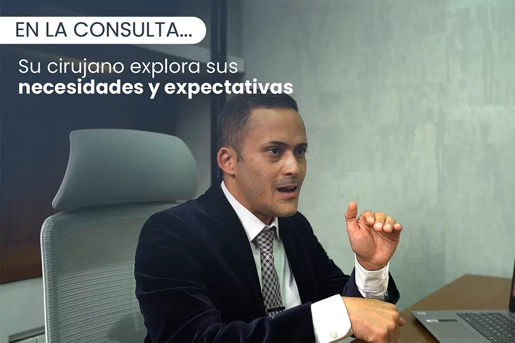 La consulta también es el mejor momento para hacerle preguntas a su cirujano sobre las diferentes alternativas para alcanzar sus expectativas y comprender las ventajas y desventajas de cada opción.
