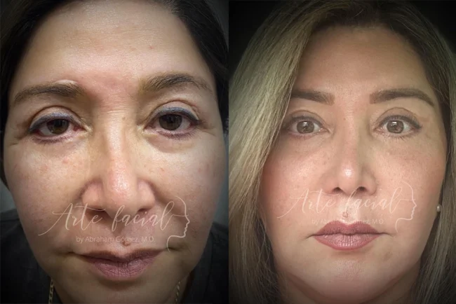 Cuando hay un exceso de piel o bolsas pronunciadas en los párpados se recomienda la Blefaroplastia. Sin embargo, en algunos pacientes se pueden alcanzar buenos resultados con rellenos de ácido hialurónico.